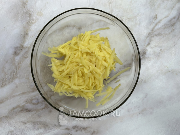 Картофель очистите, промойте и натрите на крупной терке.