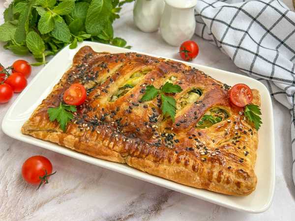 Достаньте готовый пирог из духовки, дайте немного остыть перед подачей.