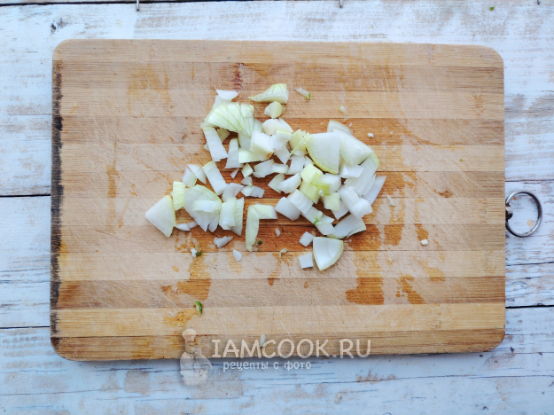 Лук освободить от шелухи, нарезать небольшими кубиками.