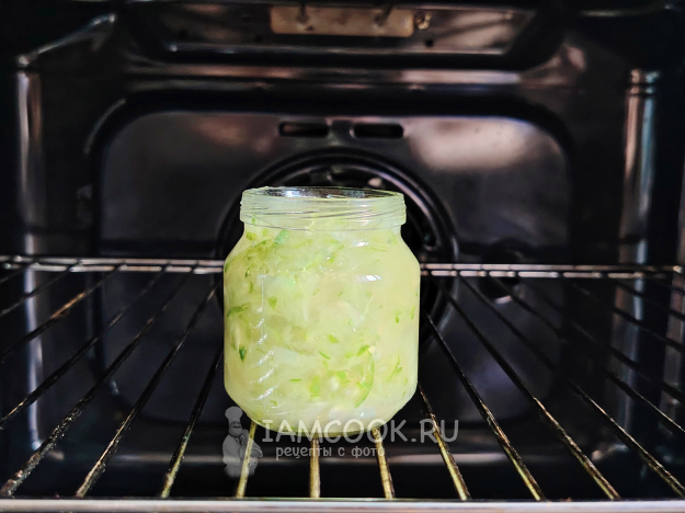 Дополнительно простерилизовать заготовку в банках на водяной бане или в духовом шкафу при температуре 150 градусов в течение 10 минут.