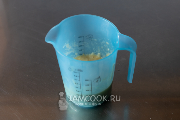 Бананы распюрируем (можно вилкой, можно погружным блендером).