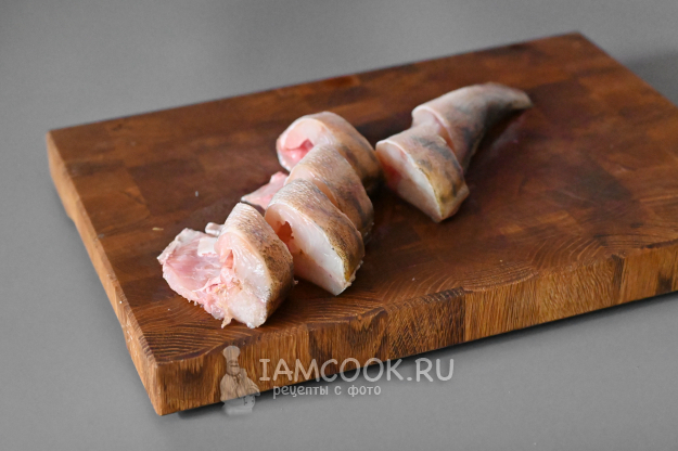 Нарежьте судака на куски толщиной примерно 1,5-2 сантиметра. Солить и перчить рыбу не нужно, так как соль и перец будут добавляться в молоко.