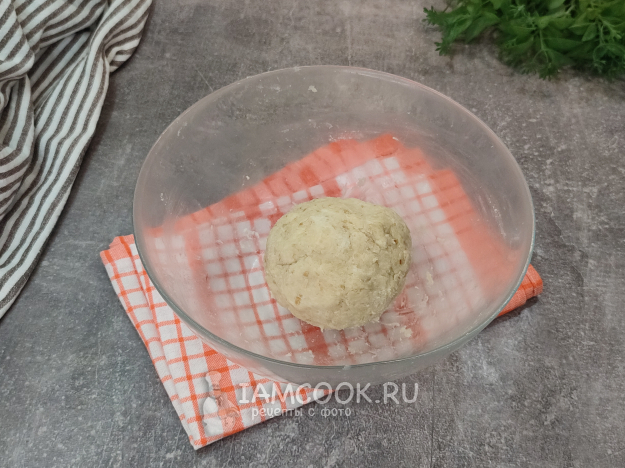 Тесто нужно замесить. Но в данном случае правильнее будет сказать - собрать тесто в колобок. От тепла ваших рук масло начнет таять и тесто постепенно соберется в комочек. И всё, оно готово к дальнейшей работе.