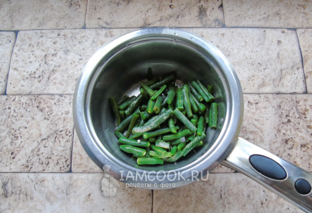 Стручковую фасоль помойте и выложите в кастрюлю.