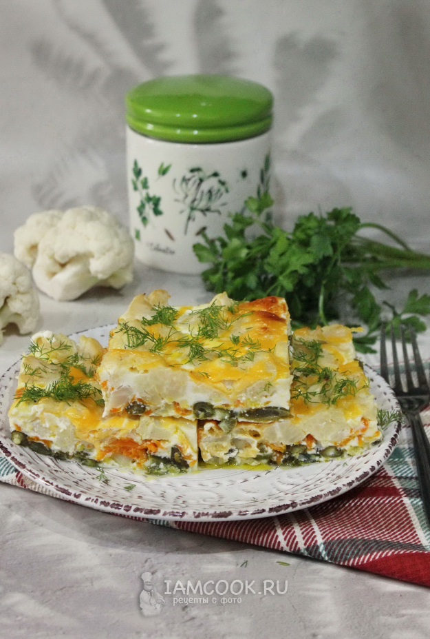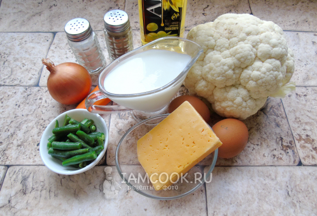 Соберите ингредиенты для приготовления цветной капусты со стручковой фасолью в духовке.