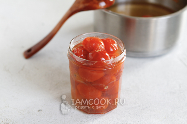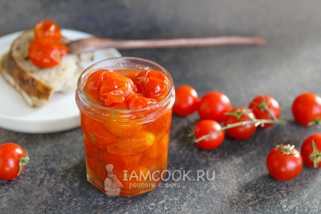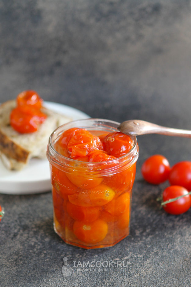 Варенье из помидоров черри готово. Подать его можно к мясу или блинам. Мы же любим такое варенье с домашним хлебом.