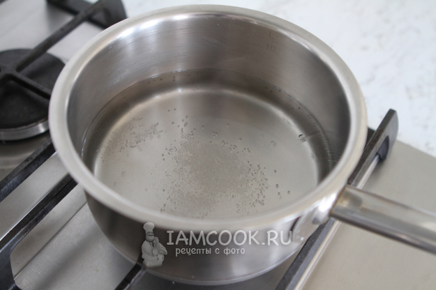 Отправьте на плиту, подождите, пока закипит сироп и полностью растворится сахар. Убавьте огонь и варите сироп 5 минут.