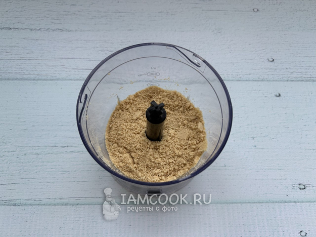 Измельчите печенье в блендере в мелкую крошку.