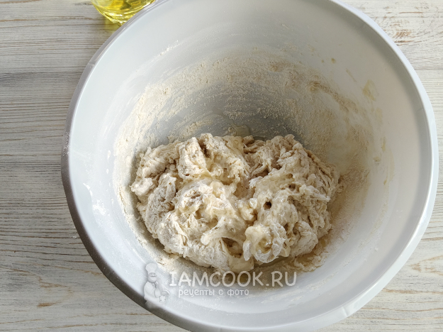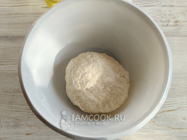 Добавлять муку, пока не сформируется мягкий колобок теста. Накрыть тесто и оставить "отдохнуть" 10-15 минут.