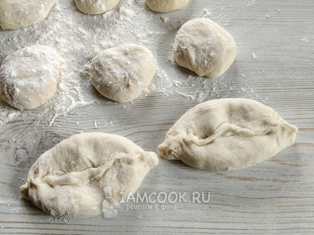 Защипнуть тесто сверху начинки, сформировать пирожок.