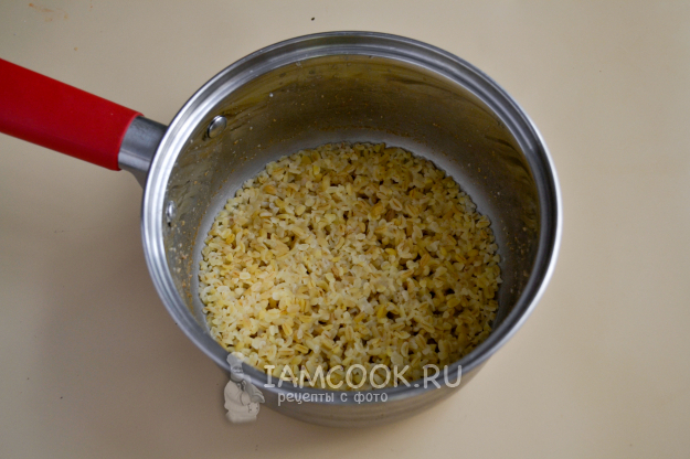 Булгур промойте, положите в сотейник, залейте холодной водой в соотношении 1 к 2, посолите и поставьте на огонь. После закипания сделайте огонь тихим и варите 15-20 минут, до полного впитывания воды. Если воды было больше, то переложите готовый булгур в дуршлаг, чтобы лишняя вода стекла. Готовый булгур охладите.