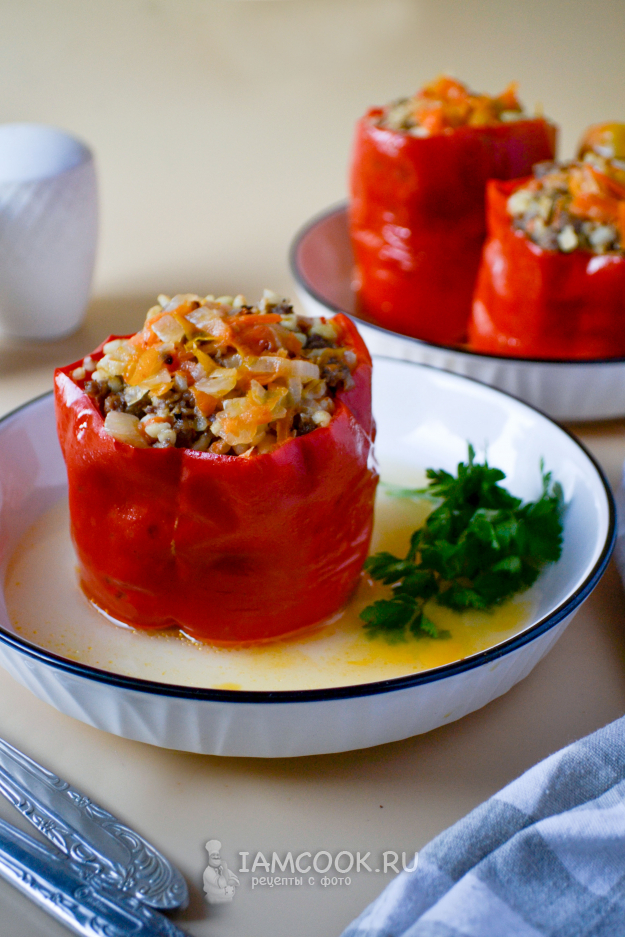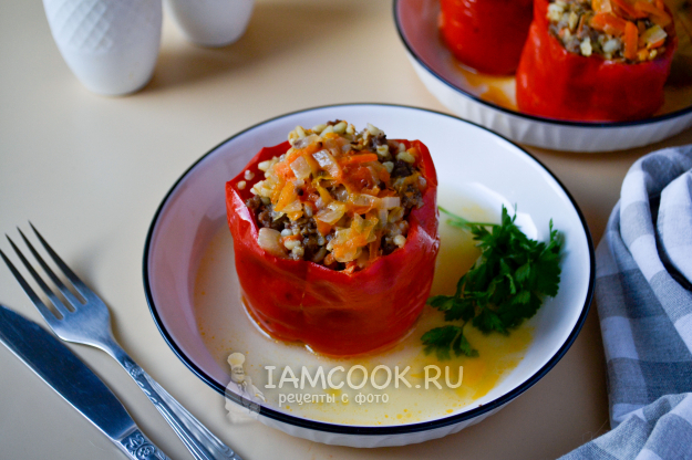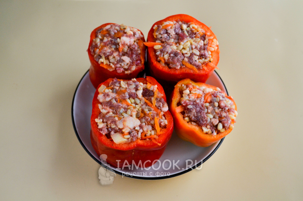 Заполните перцы фаршем.
