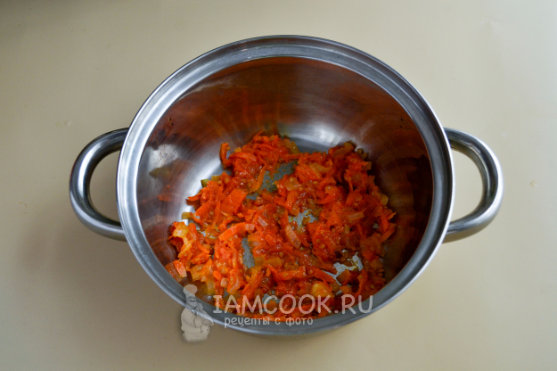Помешивая, на среднем огне обжарьте овощи в течение 5-6 минут.