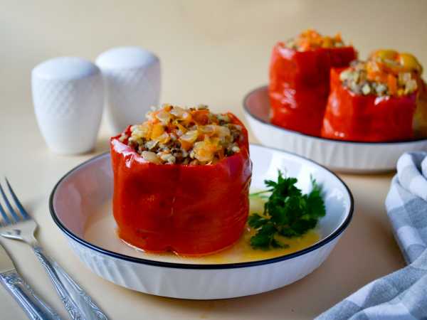 На стол перцы, фаршированные фаршем и булгуром, подавайте горячими, полив бульоном и обжаренными овощами.