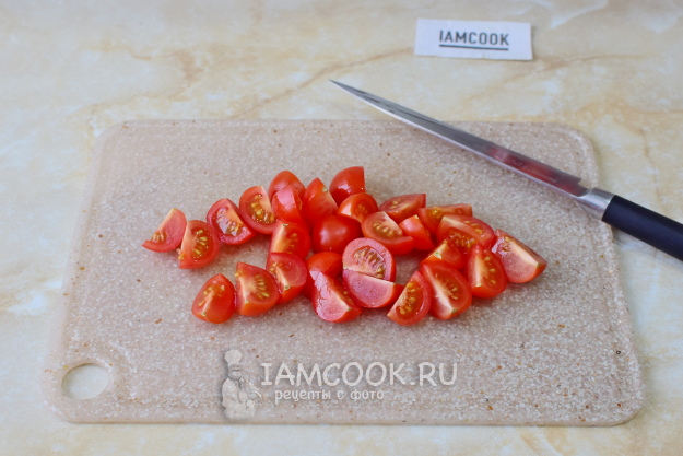Помидоры помойте и нарежьте. Черри достаточно разрезать каждую на 2-4 части.