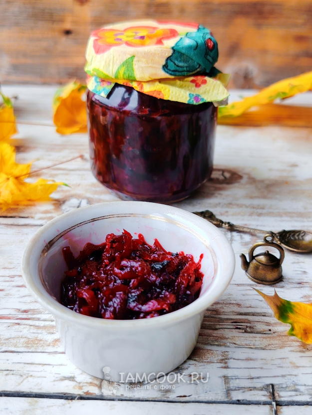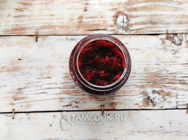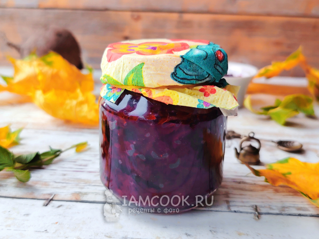 Разложить горячее свекольное варенье по стерильным банкам, сразу закрыть крышками.
