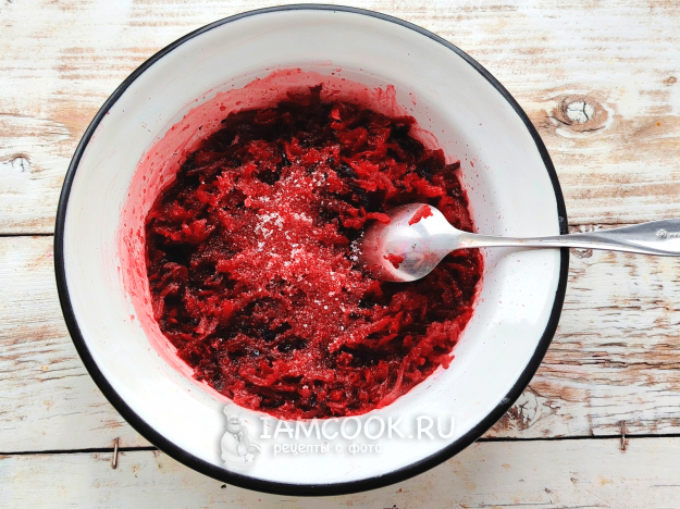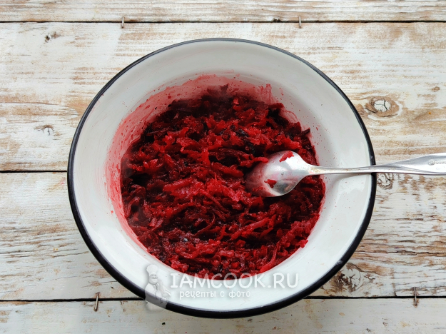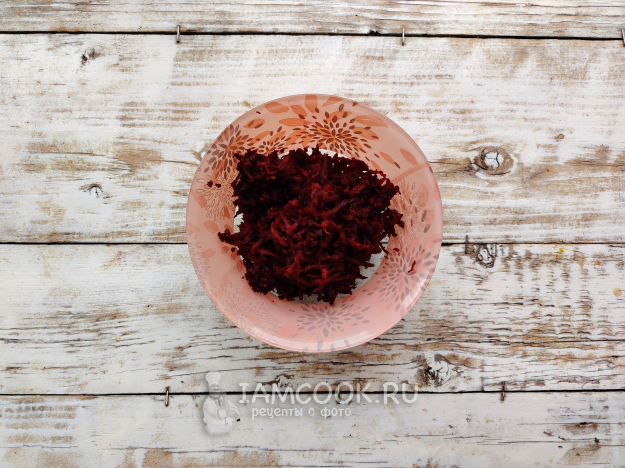 Свеклу почистить, натереть на терке со средней ячейкой.