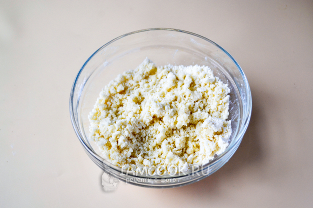 Руками довольно быстро разотрите ингредиенты до крошки.