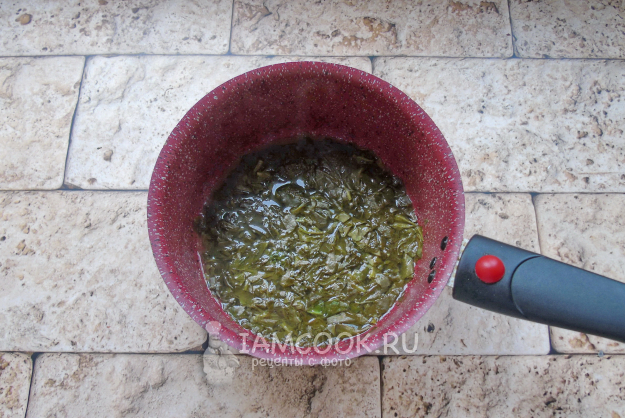 Тонкой струйкой влейте в кастрюлю со щавелем и, постоянно перемешивая, доведите до кипения. Снимите с плиты.