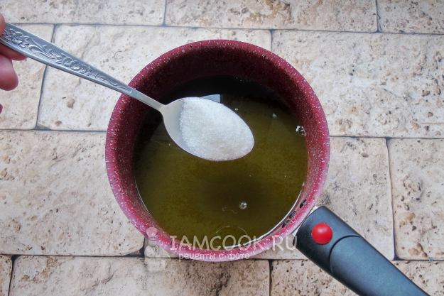 Налейте воду, добавьте сахар и щепотку соли. Сахар кладите по вкусу, мне хватило 50 граммов. Доведите до кипения и варите 3 минуты, помешивая.