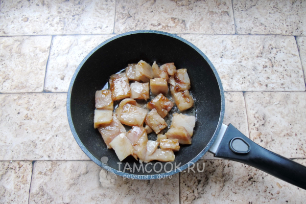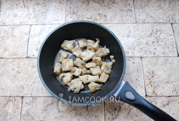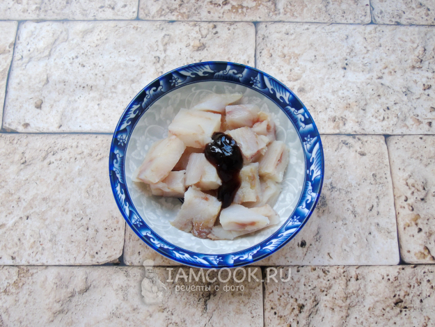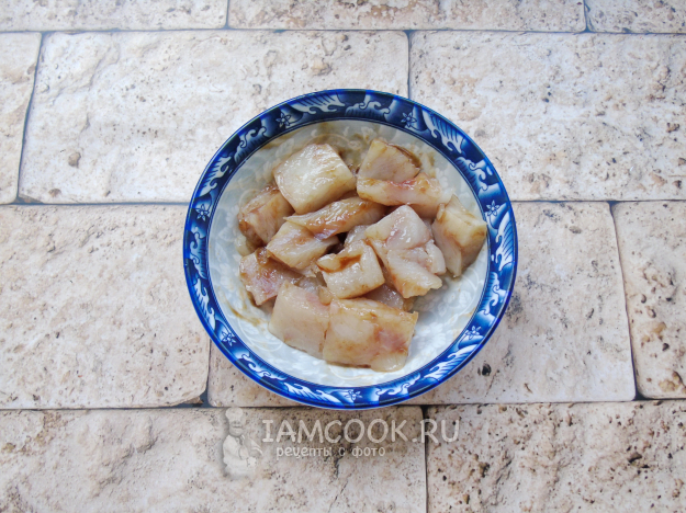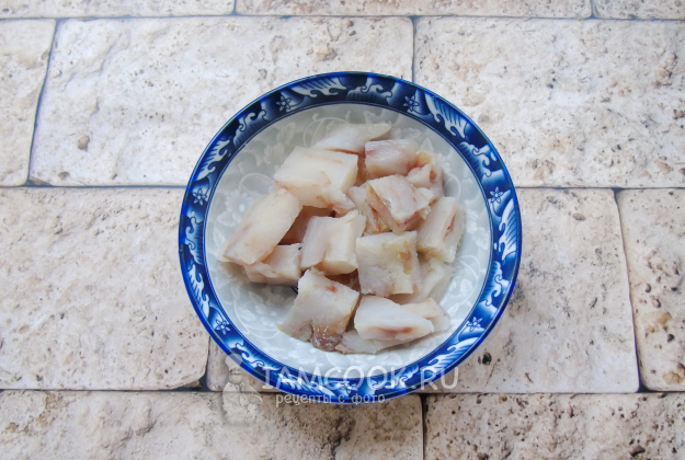 Филе рыбы помойте и нарежьте небольшими кусочками.
