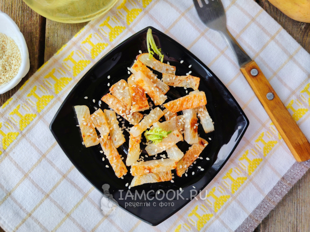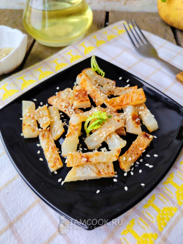 Перед подачей жареную репу можно посыпать кунжутом. Приятного аппетита!