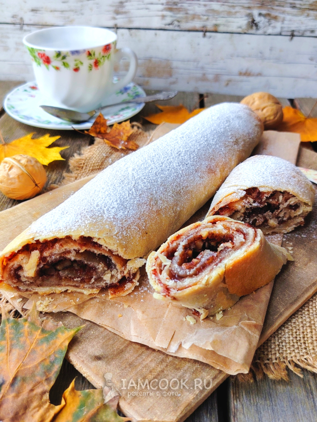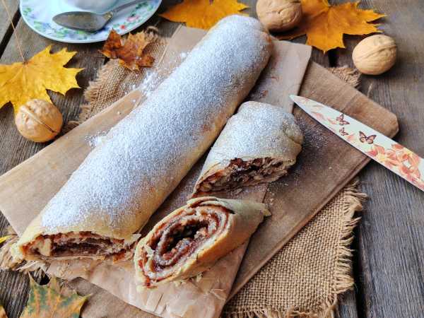 Продукты для штруделя с вареньем и орехами соберите по списку. Варенье лучше взять густое и однородное по консистенции (без кусочков фруктов).