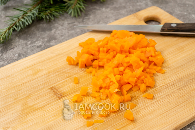 Следом нарезаю сваренную морковь.