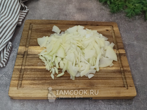 Лук нарежьте недлинной соломкой.