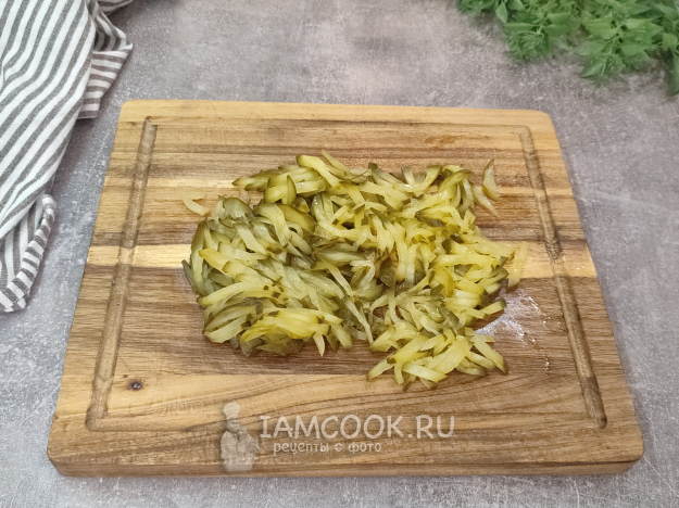 Огурцы также нарежьте недлинной соломкой.