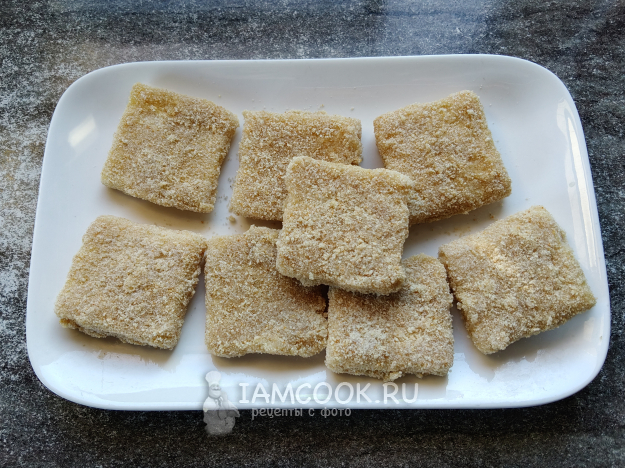 Смажак (жареный сыр по-чешски) готовим из сыра и остальных ингредиентов по списку выше.