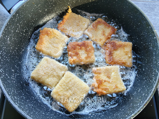 Жарить сыр в горячем масле на среднем огне до образования румяной корочки.