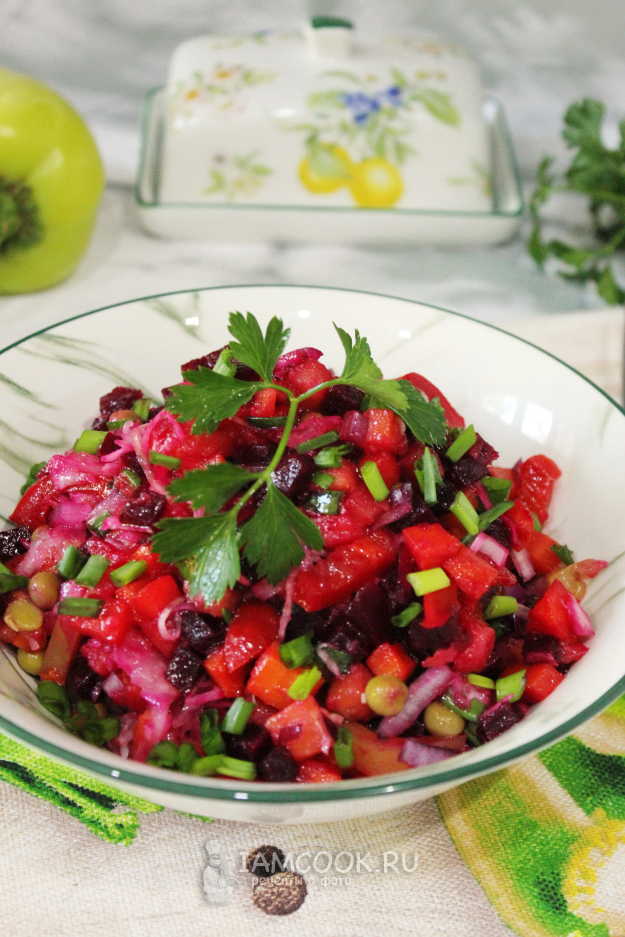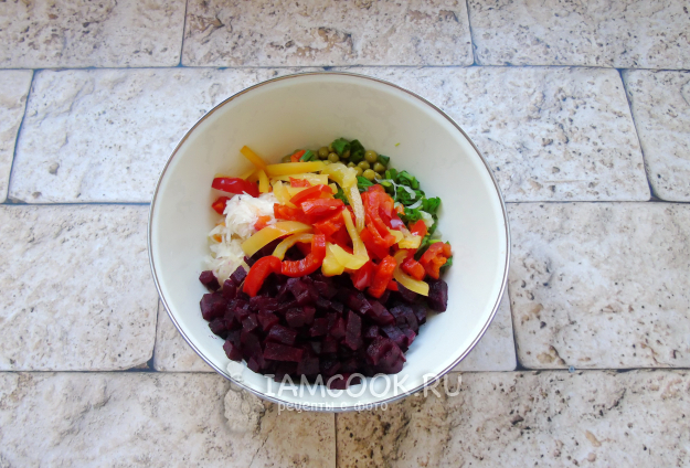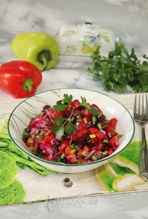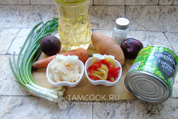 Соберите ингредиенты для приготовления винегрета с болгарским перцем (маринованным).