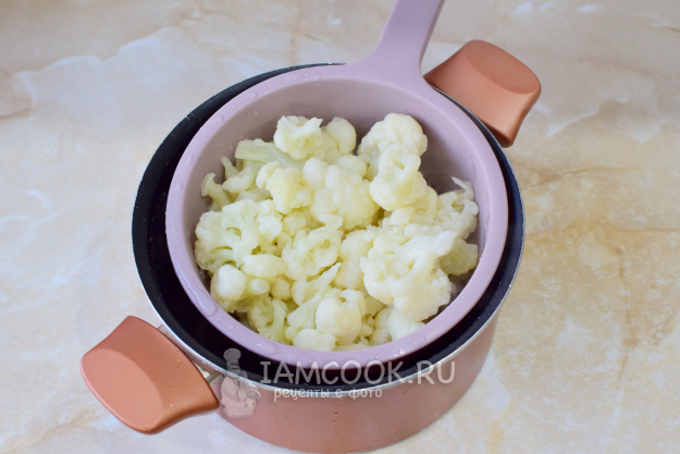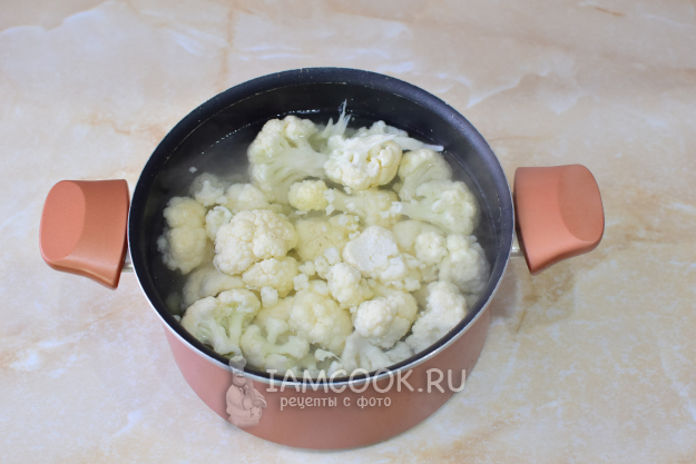 Опустите цветную капусту в кипящую воду, доведите до кипения и проварите 8-10 минут.