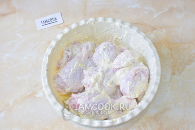 Все хорошо перемешайте, чтобы голени были равномерно покрыты сметаной и специями. Оставьте постоять на 1-2 часа.