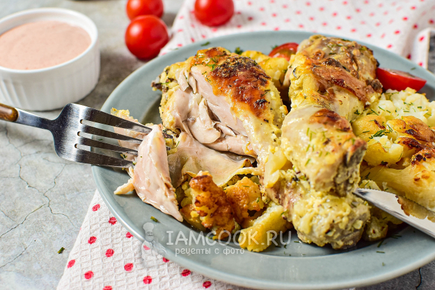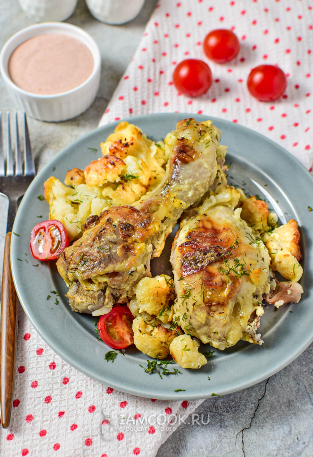 Куриные голени с цветной капустой в духовке, рецепт с фото