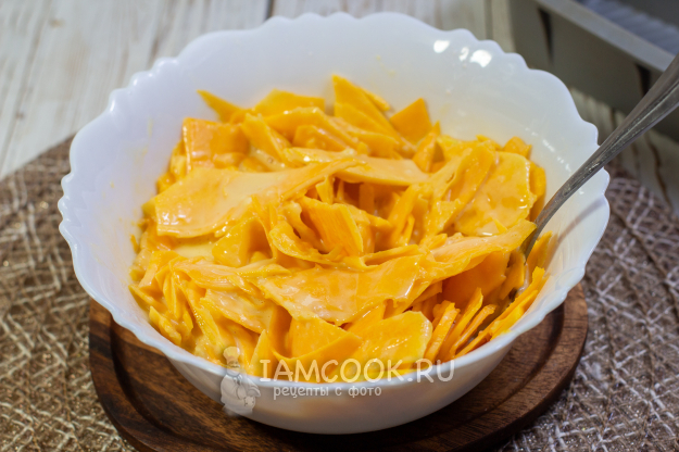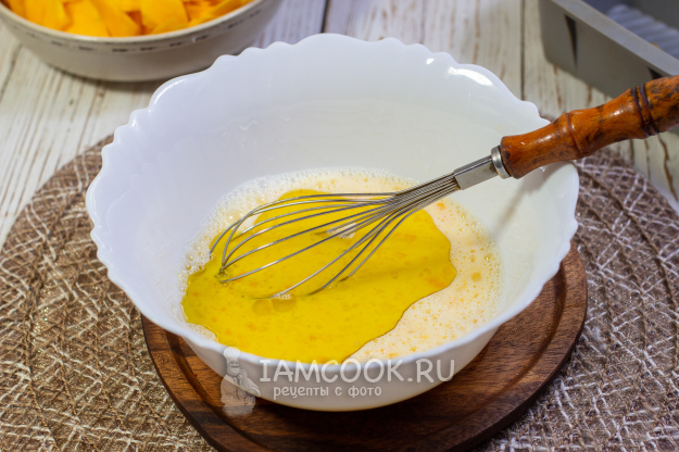 Тщательно перемешайте. Тесто должно обволакивать каждый кусочек тыквы со всех сторон.