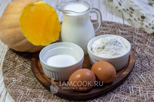 Соберите необходимые продукты для приготовления запеканки из тыквы без творога.