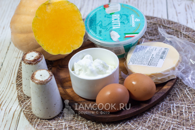 Соберите необходимые продукты для приготовления запеканки из тыквы с сыром в духовке. Запеканка получится вкусной, если взять качественные ингредиенты. Выберите вкусную, сочную и спелую тыкву. Вкус этой запеканки зависит от вкуса тыквы и сыра. Усилить вкус можно при помощи приправ и специй - мускатного ореха, тимьяна, орегано и других ароматных трав. Вместо сыра Рикотта можете взять другой творожный сыр, а греческий йогурт заменить на сметану.