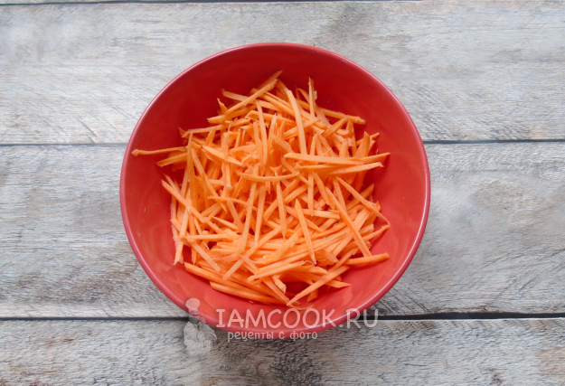 Батат очистите, помойте и натрите на терке для моркови по-корейски или нарежьте соломкой.