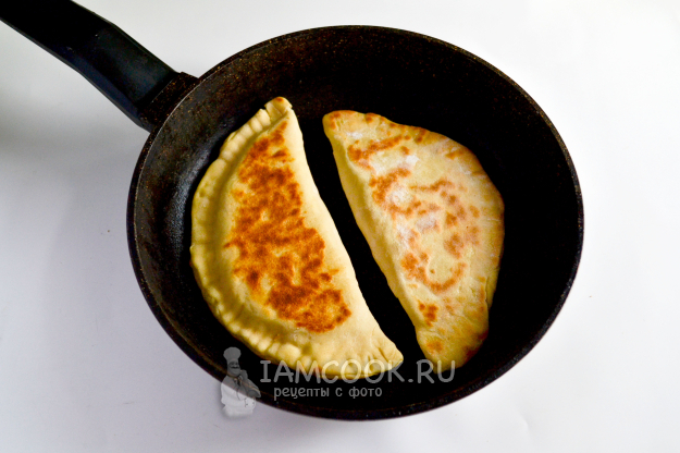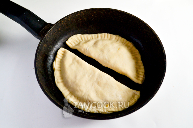 Разогрейте сковороду. Вообще, жарить чуду нужно на сухой сковороде, но я буквально капнула растительного масла на сковороду. Положите заготовки. Жарьте чуду с тыквой на кефире на сковороде на среднем огне до румяных пятнышек, примерно 3-4 минуты.