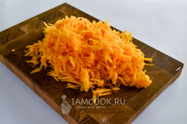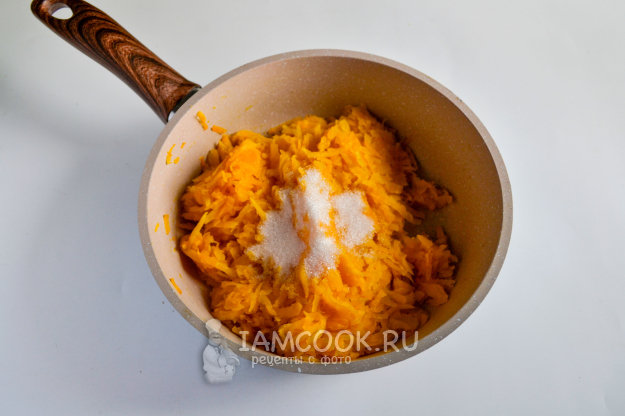 Тыкву очистите от кожуры, семечек. Натрите на крупной терке.