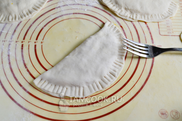 Сверните лепешку пополам, накрыв начинку свободной стороной лепешки. Края прижмите при помощи вилки.