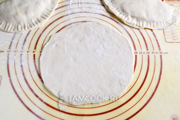 Тесто разделите на равные кусочки. Скатайте из кусочков колобки, затем раскатайте скалкой в круглую лепешку толщиной примерно 2 мм.