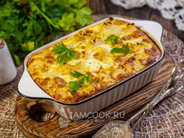 В подходящую форму, смазанную сливочным (растительным) маслом, выложите отварную цветную капусту.