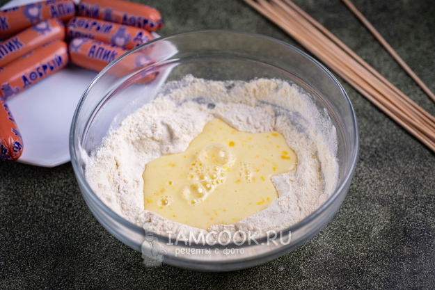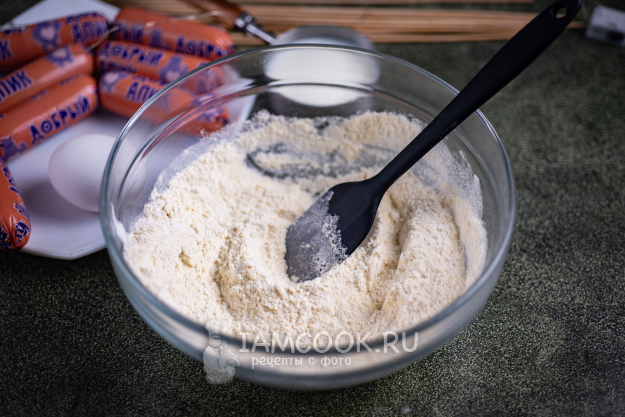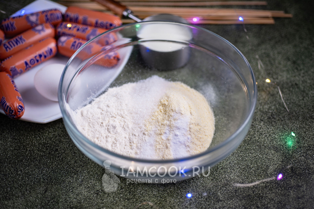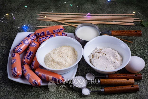 Все необходимые ингредиенты для приготовления корн-догов в мультипекаре соберите по списку.