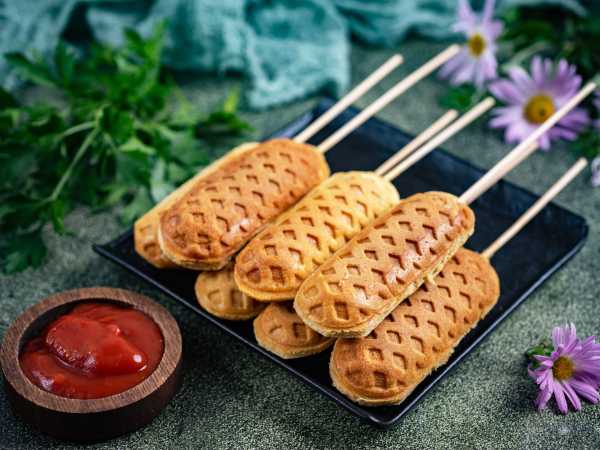 Готовые корн-доги подавайте к столу горячими. Приятного аппетита!