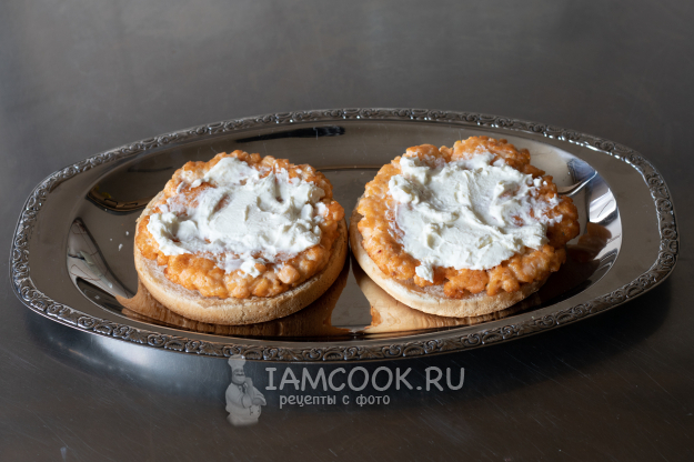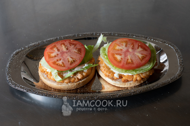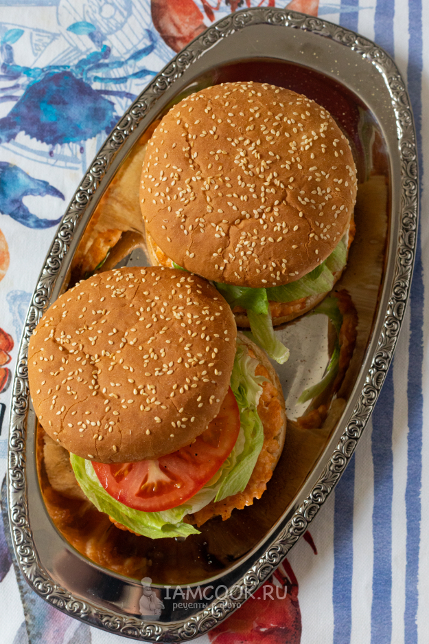 Порядок сборки следующий: нижняя часть булки, котлета, крем-чиз...