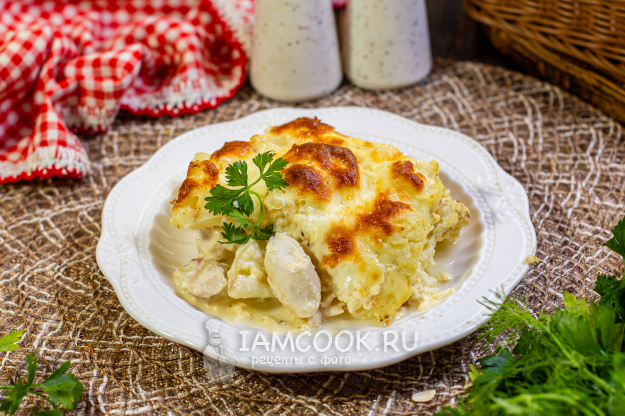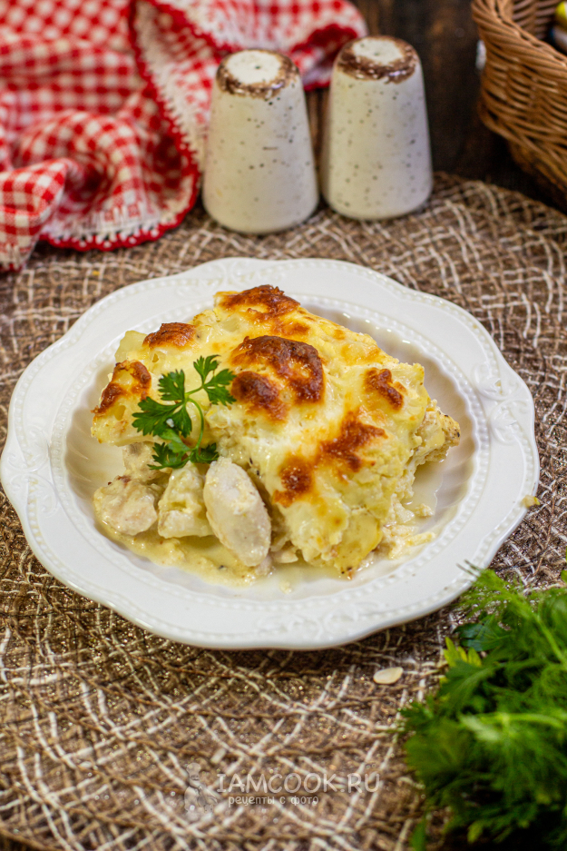 Соберите все необходимые ингредиенты для приготовления запеканки из цветной капусты с курицей в аэрогриле.