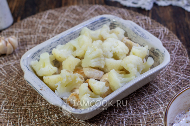 Цветную капусту можно использовать как свежую, так и замороженную. Во втором случае ее надо будет полностью разморозить и дать стечь лишней жидкости.